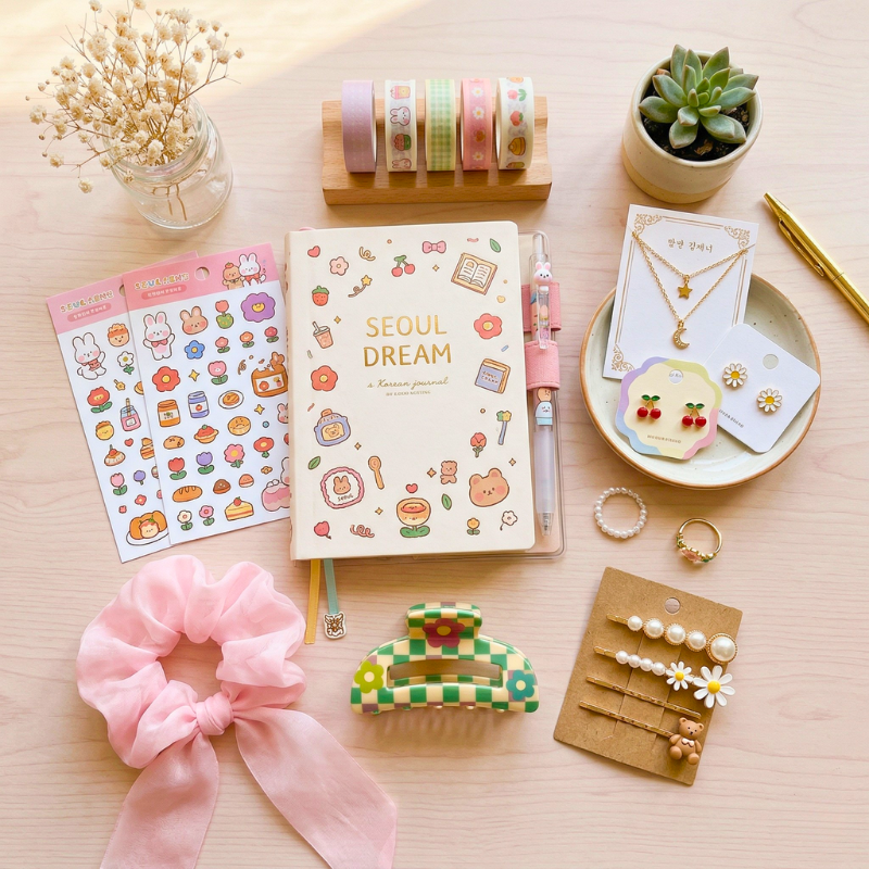 Discover aesthetic Korean stationery, stylish jewellery, and adorable hair accessories — handpicked to add charm to your everyday style.
